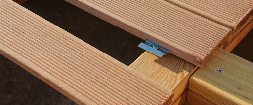•  Скрытый способ. Используются специальные клипсы или кляймеры, которые фиксируют доску сбоку. Визуально настил выглядит аккуратнее, крепеж полностью скрыт. Этот вариант чаще выбирают для террас и веранд.